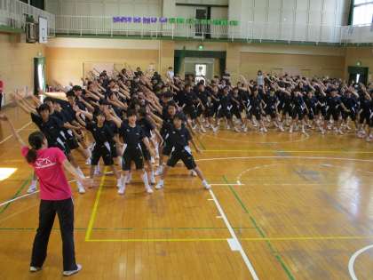 2年生は、職業講話の打合せの後、体育館でソーラン節の練習をしました。練習を重ねるごとに、声も出て動きもまとまってきています。6限目にはグラウンドに移動して、綱引きの動きの確認とソーラン節の練習に取り組みました。