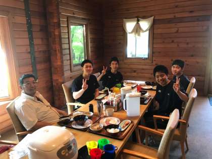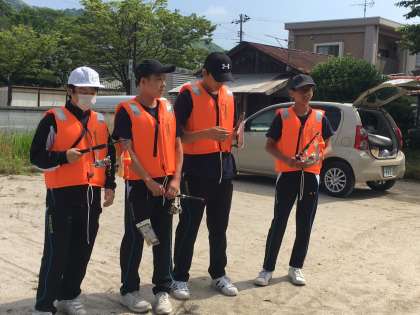 修学旅行2日目午前は、民泊ごとに班単位で活動します。民泊にも馴染んできました。記念写真を撮り、これから釣りに向かうところです。