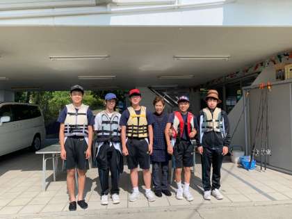 同じく民泊で、班単位での活動です。麺づくりも行いました。これから釣りに向かうところです。