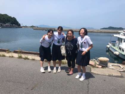民泊を終えて、記念撮影。まもなく離島式が始まります。