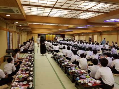 ホテルの5階、鶴の間に集まって入館式です。