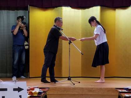 ホテルの退館式で、生徒代表が挨拶しました。そして、昨晩のレクリエーションの最優秀クラスの発表があり、4組が優勝しました。修学旅行最終日、いよいよラフティングへとバスは予定通り出発しました。