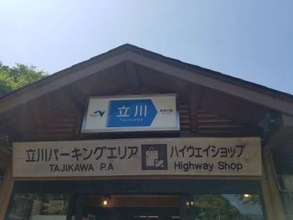 立川パーキングエリアでトイレ休憩、バスはラフティング会場に向けて予定通り出発しました。