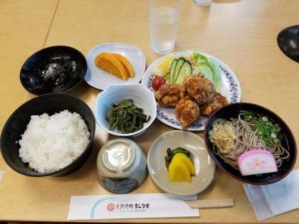 3日目の昼食を「まんなか」で食べました。唐揚げ定食です。