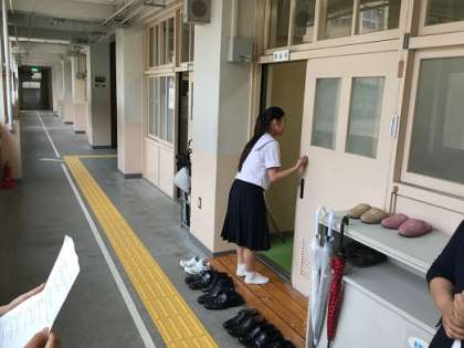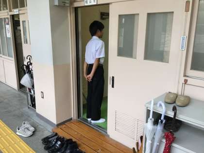 写真は、クラス代表生徒が、講師の先生をお迎えに、校長室まで来ている様子です。