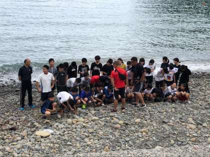 海プログラムの前に、クラスごとに記念撮影です。