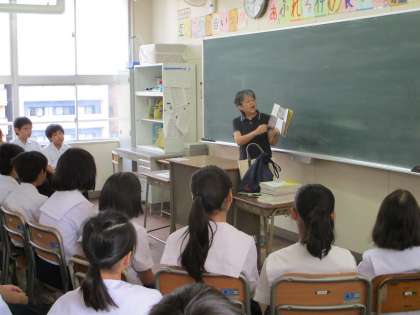 本日の絵本も「あらしのよるに」です。読み聞かせの本を持ってボランティアの皆さんと校長先生と記念撮影しました。明日は、3年の絵本の読み聞かせになります。