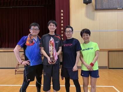 6月16日(日)明治小学校を会場にして実施された「第95回PTA親善卓球大会」において、花乃井中学校は3チームが出場しました。校区3小学校(西船場・本田・明治)と西区3中学校(西・堀江・花乃井)から16チームが出場し、花乃井中学校が優勝しました。