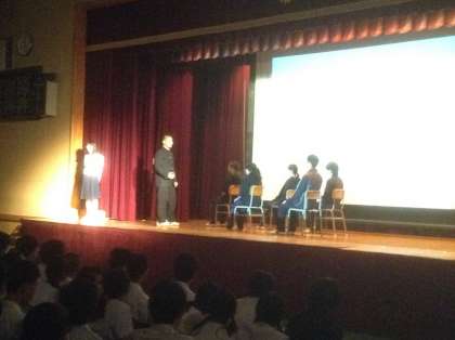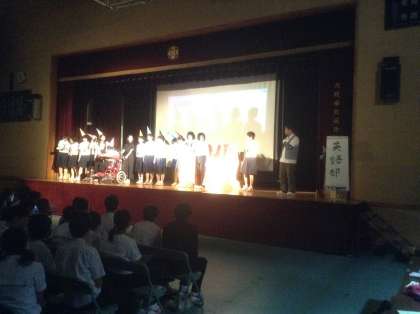 10月3日、文化祭における社会部、英語部、英語科の発表の様子です。社会部は百人一首を今と昔の読み方の違いを調べました。英語部、英語科は見事な英会話力を披露してくれました。