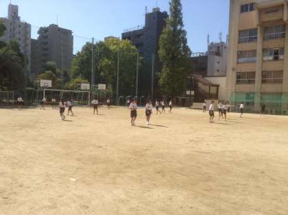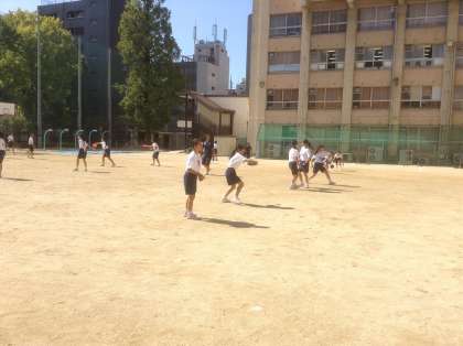 10月8日、1年生女子体育でニュースポーツ「アルティメット」という競技を始めました。この競技はバスケットボールとアメリカンフットボールを合わせた競技で、フライングディスク(いわゆるフリスビー)を用います。今日は、このディスクを投げる練習とキャッチする練習です。なかなか上手に行っていました。