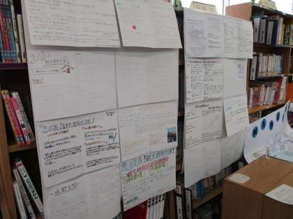 夏休みの課題(写真中)〜5つのテーマに分かれて調べ学習