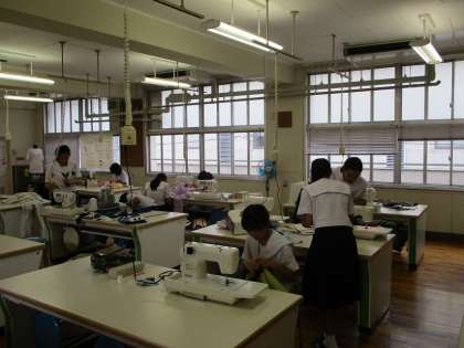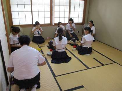 同じく中学校部活動見学、東館3階の音楽室で吹奏楽部、2階の被服室で家庭科部、1階茶室で茶道部の活動です。