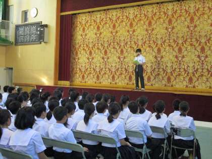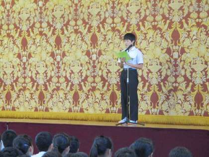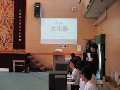 9月26日(木)第69回文化祭の開会式です。3年生の文化祭実行委員会の委員長が、力強く「開会の言葉」を述べました。司会進行は生徒会です。
