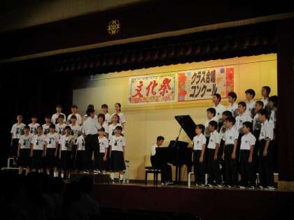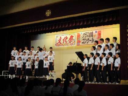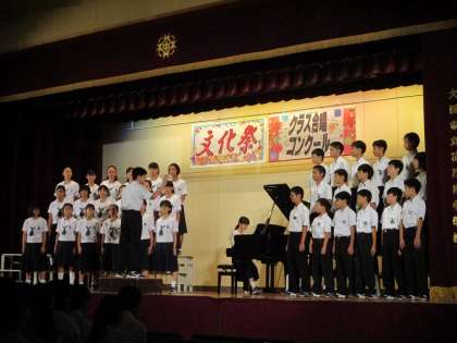 クラス合唱コンクール1年後半です。写真上から5組・1組・4組です。発表曲は次の通りです。