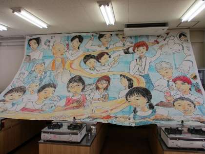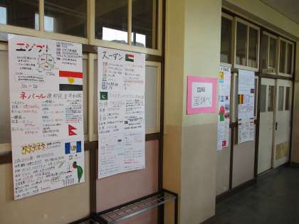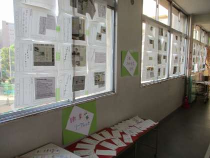 「2年CT〜 KIZUNA YUME INOCHI」の展示発表は、職業調べリーフレット・平和学習の短歌・国際理解の国調べが、3階廊下に展示されました。また、1階の調理室には、デジタルアートの作品が展示され、舞台発表のメイキング映像も見ることができました。