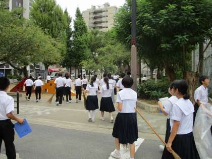 10月2日(水)4限、2年「保健体育」の授業は、校外(近隣の公園付近)に出て、フィールドワークに取り組みました。保健の時間にゴミの分別を学習しています。班ごとにゴミを収集して、学校に戻ってから分別します。最後にまとめをして本時の授業は終わりました。