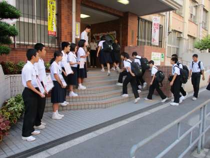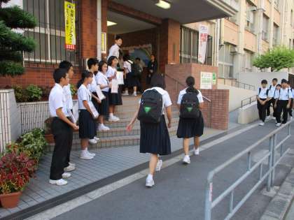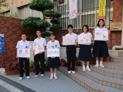 10月7日(月)朝8時頃から、生徒会中心に朝の挨拶運動を行いました。毎週月曜日の全校集会前に、プラカードを持って、登校する生徒に挨拶を呼びかけます。