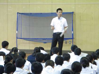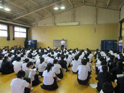 10月15日(火)5限、格技室において、2年生は「職場体験前日指導」を行いました。職場体験の冊子を使って、学年主任より全体説明がありました。