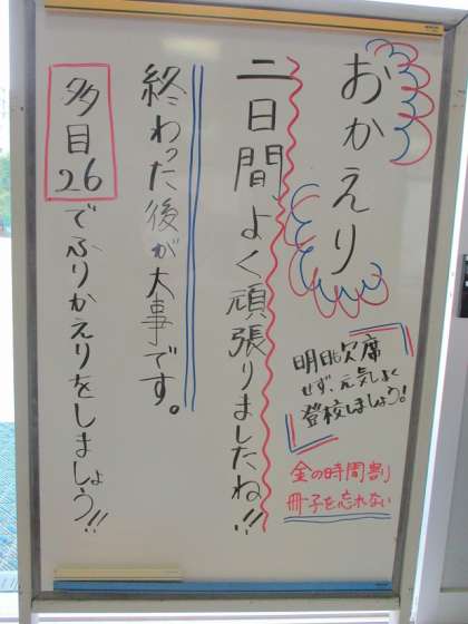 職場体験学習を終えた2年生が、順次学校に戻ってきました。教室にもどり、班ごとにふりかえりを行います。明日から、職場体験学習のまとめに入ります。