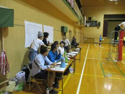 本日のバレーボール大会の運営や記録は、本部席で花乃井中学校PTA役員会と保健体育委員会で行っています。朝早くから準備ありがとうございます。