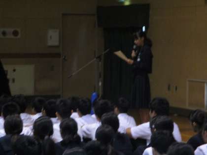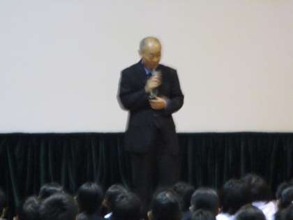 10月26日(土)芸術鑑賞会の後半が始まりました。司会進行は前半第1部と同様に生徒会役員です。初めに校長先生が中国語で自己紹介されました。そして「芸術鑑賞会として影絵を鑑賞します。日頃いろんなところで、芸術にふれたり見たりします。いろいろ感じることがあって、瞬間瞬間に感じること、人は感性を持っています。そうゆう瞬間を味わってもらえればと思います。秋も深まりました。素晴らしい芸術鑑賞会にしてほしいと思います。」と挨拶されました。後半の第2部(2年・1年4〜6組)の公演内容は第1部と同じです。