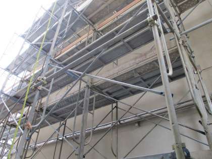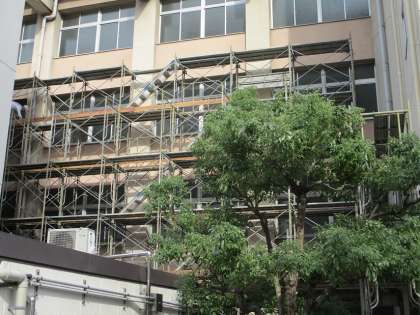 10月28日(月)より、外壁塗装工事のための足場組立作業が始まりました。現在、西館の外壁に下から足場が組み上げられています。足場完成後、校舎の外壁塗装が始まり、2月中旬まで工事が行われます。