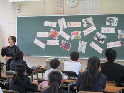先生の呼びかけに英語で答えたり、単語をリピートしたり、最後は神経衰弱のゲームで語彙力を高めました。