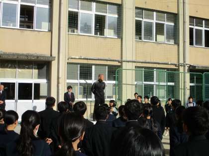 次に生活指導部長より、登下校も含めて、冬服着用のマナーについて説明がありました。また防寒着やマスクについても説明しました。