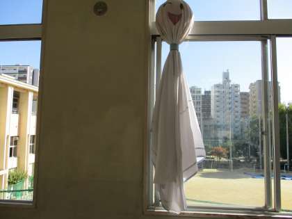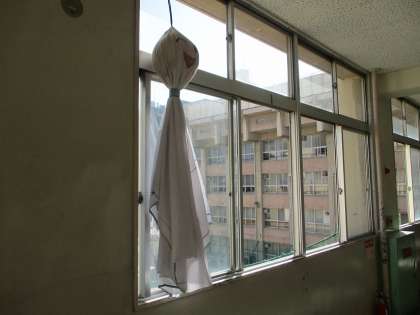 先週より、2学年の教室がある3階廊下に、学年の象徴である「てるてるくん」が登場しました。来週15日(金)に実施される校外学習が「晴れますように!」と2学年の願いが込められています。2年生の校外学習は、1日乗車券を利用して、秋の京都を散策します。