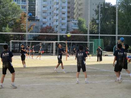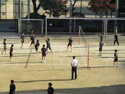 同じく11月8日(金)公開授業の様子です。保健体育「バレーボール」で、レシーブ・トス・アタックの練習をした後は、試合形式で確認です。セッターとタイミングを合わせてスパイクを打ち、自己の課題を見つけ、次の学習につなげます。
