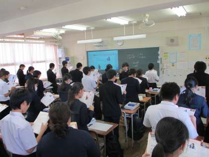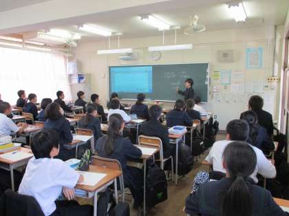 同じく11月8日(金)公開授業の様子です。英語「Daily Scene5道案内」の中で、「乗り物での行き方をたずねる・教える」がテーマになっています。生徒たちは、音読活動やペアワーク等に、積極的に参加しました。
