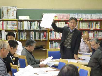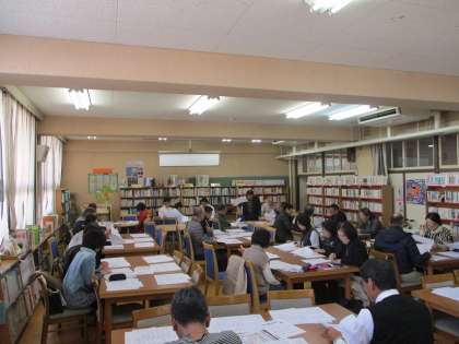 11月16日(土)14時より図書室おいて「花乃井中学校が避難所になる時」江戸堀避難所開設訓練について、会議を行いました。地域・行政・PTAより約40人が集まり、11月30日(土)の午前中に行われる、避難所開設訓練の最終打合せの会議です。江戸堀連合振興町会の尾松会長より、詳しく説明があり、当日の訓練がスムーズに進行できますように、みんなで話し合いました。