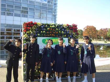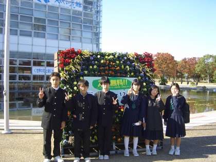 11月15日(金)1年校外学習「咲くやこの花館」前で記念撮影。
