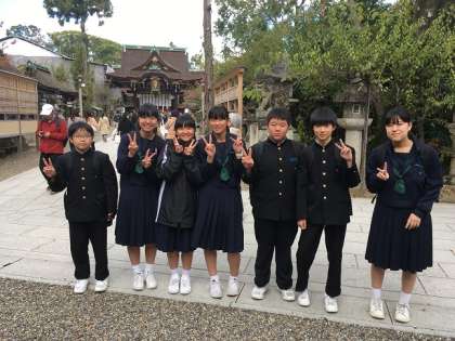 11月15日(金)2年校外学習「北野天満宮」で、記念撮影。