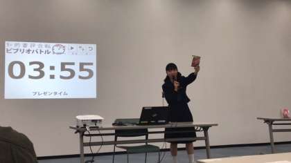 12月1日(日)大阪府咲洲庁舎(さきしまコスモタワー)で開催されました「第5回大阪府中高生ビブリオバトル大会」に本校2年の福田さんが発表者(バトラー)として出場しました。校内予選を勝ち抜き、花乃井中学校の代表として、プレゼンタイムで5分間「最後の医者は桜を見上げて君を想う/二宮 敦人」について、約200名の聴衆の前で「この本を読んで欲しい!」という熱い思いを伝えました。