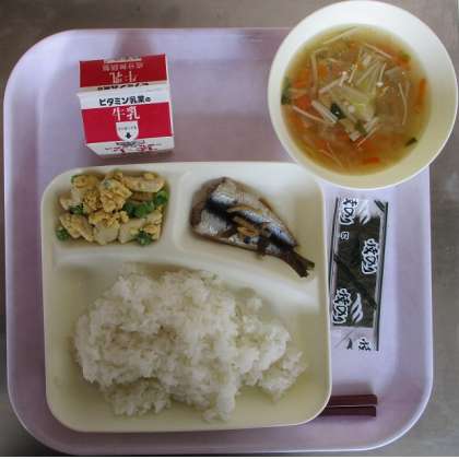 ご飯、牛乳、焼きのり