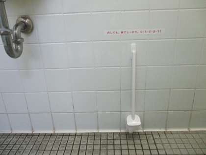 汚れた時は、数秒でささっと掃除して、みんなが気持ちよく使えるトイレを保ちましょう。トイレブラシは各学年の美化委員が設置しました。