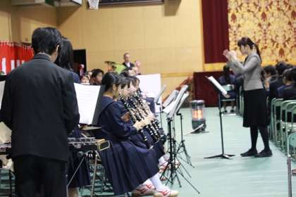 式典は吹奏楽部の演奏「オープニングセレモニー」で開式しました。国歌・大阪市歌・校歌も吹奏楽部の演奏です。