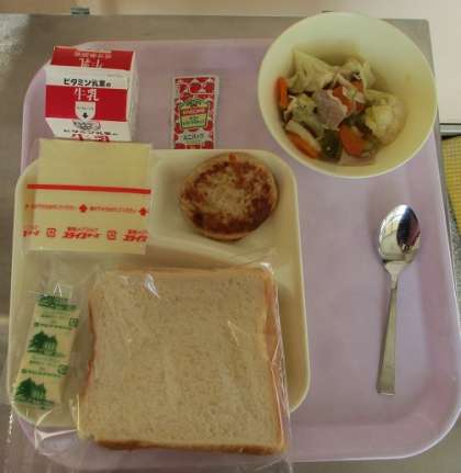 とうふハンバーグ、カリフラワーのスープ煮、スライスチーズ