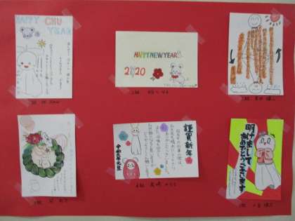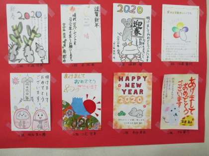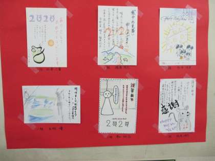 1月の冬休み中に、花乃井中学校の2学年所属「てるてるくん」宛の年賀状が、2年全員から届きました。一部を紹介します。