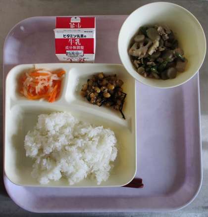 ご飯、牛乳、筑前煮、ひじき豆、紅白なます