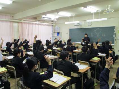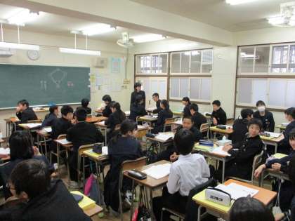 授業を行った担任より発問あり、ペアワークのアクティブラーニングもあり、生徒たちは自分のことと考え、内容について理解を深めました。今回の研究授業は、1・2学期に引き続き、大阪市教育センター「OJT(若手教員育成支援)」事業の1つの取り組みです。教育指導員の先生より、アドバイスをもらいました。