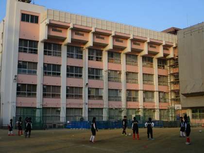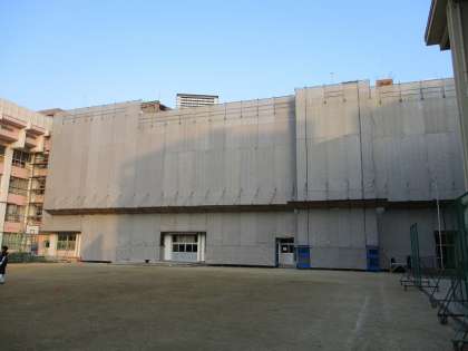 2月8日(土)朝の外壁塗装工事の進行状況です。西館のグラウンド側の足場が無くなり、壁面が全て見えました。写真は、サッカー部の朝練の様子です。10日(月)より本館のグラウンド側の足場の解体が始まります。