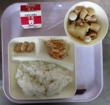 給食の給食「白花豆の煮もの」の「白花豆」は、ベニバナインゲンの仲間で、豆類の中でも大きい種類の豆です。白花豆には、たんぱく質や炭水化物が多く含まれています。6つの基礎食品群では1群に分類されます。また、不足しがちなビタミンB1などのビタミン類や、カルシウム、鉄、食物繊維なども豊富に含まれています。