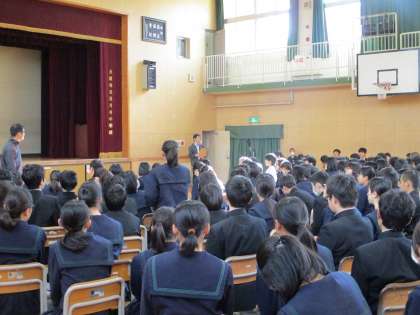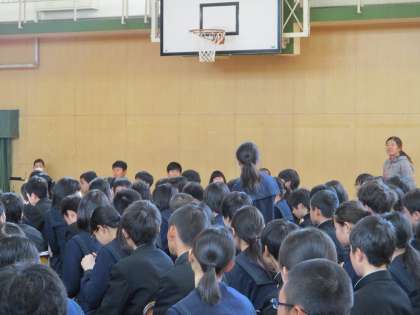 本日は、3年生の私立高校入試に合わせて、4人の先輩が話をしてくれました。次回は、3月11日(水)の公立高校入試に合わせて、9人の先輩から話を聞くことになります。