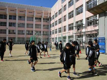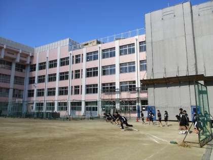 2月11日(火)建国記念日の午前中、外壁塗装工事の進行状況です。本館グラウンド側の足場の解体が進み、残すところ東側の部分になりました。今週中にはこの足場も解体されます。写真は、陸上競技部の活動の様子です。