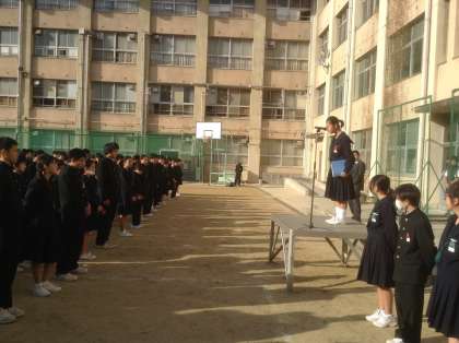 11月11日、本日は昨日延期になった全校集会が行われました。校長先生からは、新潟日報という新聞のコラムから、小学生がお年寄りに乗り合わせたバスの座席を譲る記事を読み、それに関連して2013年の「国民性調査」結果についての説明がありました。最後に、花中においても校内アンケートで「あなたは、人の役に立ちたい人間になりたいと思いますか」の結果は89%の生徒が、思う・どちらかと言えば思うと答えており、そして、現3年生は、同じ質問に対して2年時は89%であったが、3年時になると93.9%になったと。3年生は体の成長だけではなく、いろいろな学びから心も考え方も大きく成長していますね。また、2年生は明日から職業体験です。働くとは人の役に立つことですから、働く意味を肌で感じてきてほしいと思います。明日からの2日間は、2年生の姿が地域で見れます。見かけたら保護者の皆様も「頑張っているね」と声をかけていただければ幸いです。