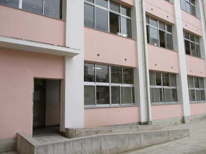 2月12日(水)外壁塗装工事の進行状況です。本館西側の足場が全てはずされ、久しぶりに1階スロープのドアが開きました。正門玄関扉もきれいに塗装されました。来週にはグラウンド側の防球ネットを取り付ける予定です。