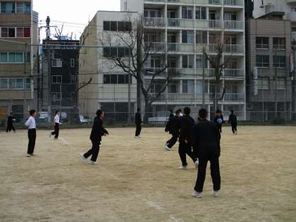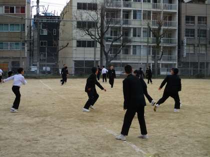 2月18日(火)昼休みには、多くの生徒がグラウンドに出て、身体を動かします。写真は、道路をはさんで南側の公園グラウンドの様子です。こちらのグラウンドでは、サッカー中心に活動します。