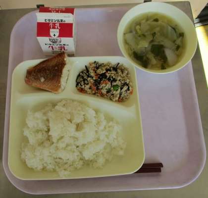 今日の給食の「あかうおのしょうゆだれかけ」の「あかうお」は、「アラスカメヌケ」です。北太平洋の寒くて深い海にすんでいて、体長は40〜50センチメートルぐらいのものが多いです。